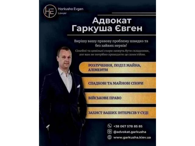 Вітаю! Мене звати Євген Гаркуша, і я – адвокат із понад 15-річним досвідом у сфері сімейного, цивільного та військового права.
