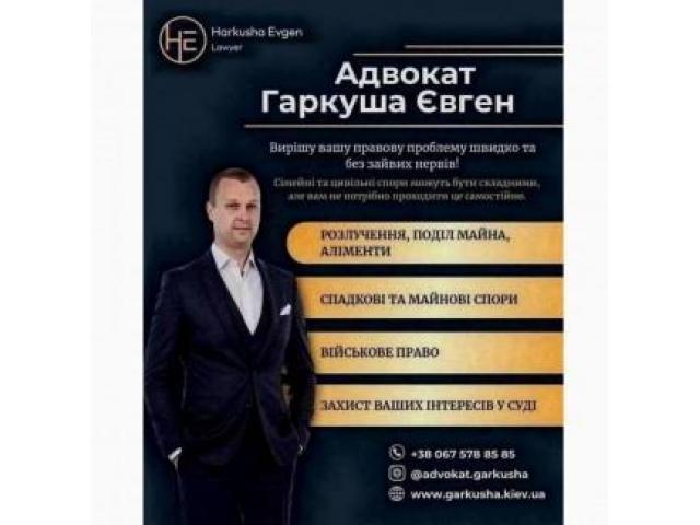 Вітаю! Мене звати Євген Гаркуша, і я – адвокат із понад 15-річним досвідом у сфері сімейного, цивільного та військового права.