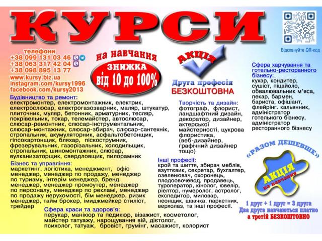 Курси кухаря, електрика, зварника, електрика, слюсаря, бухгалтер